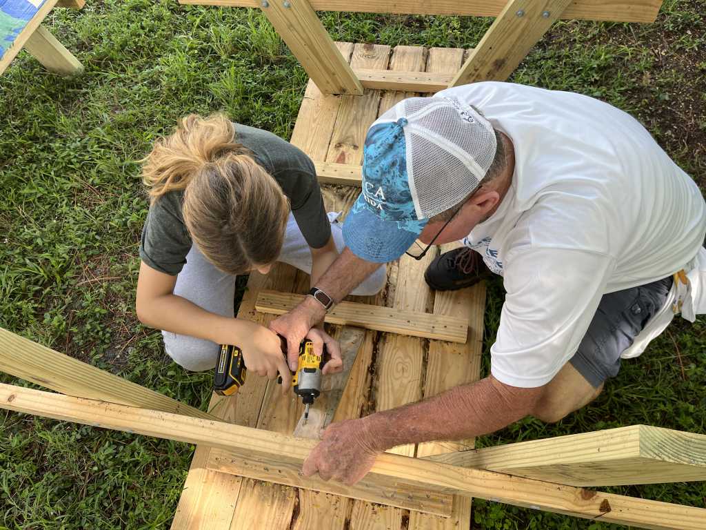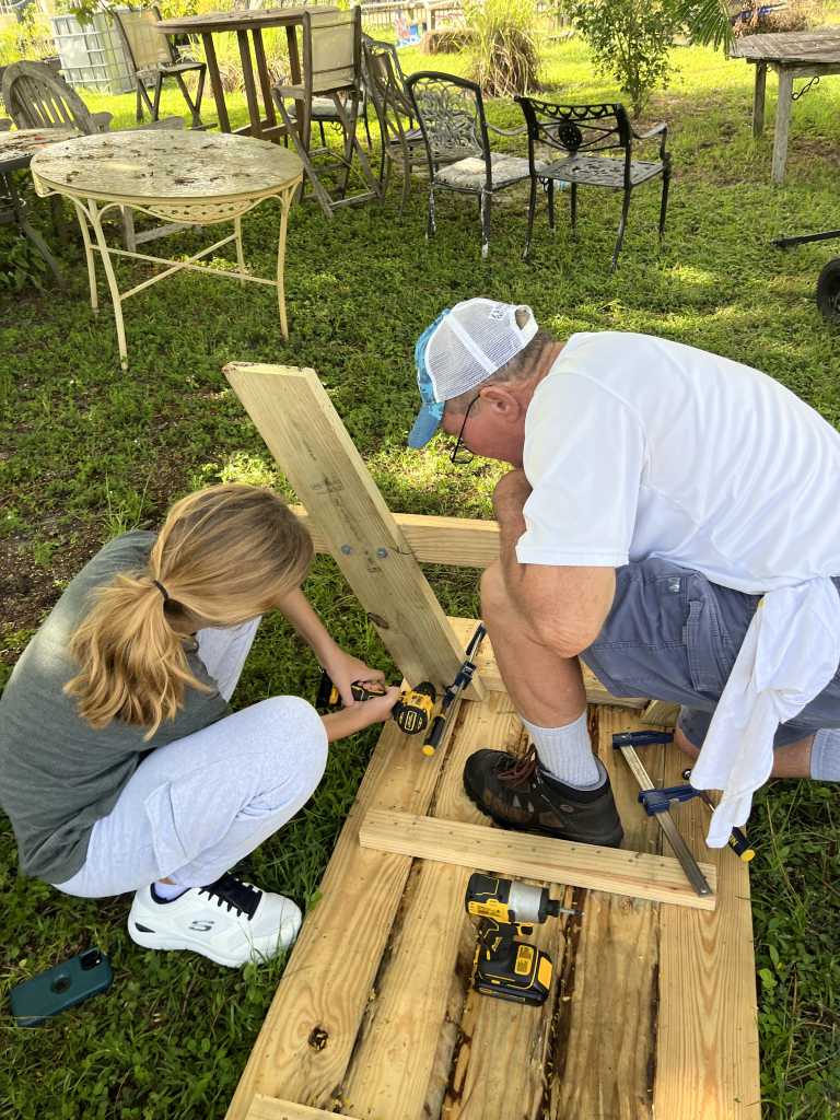 As they built the picnic set together, Jeff taught Nathaniel how to use a power drill like a pro, measure twice (and cut once!), secure everything with clamps, and most importantly, how to make confident decisions as they worked. It wasn’t just about screws and wood—it was about building confidence, patience, and pride in something that would bring joy to others.