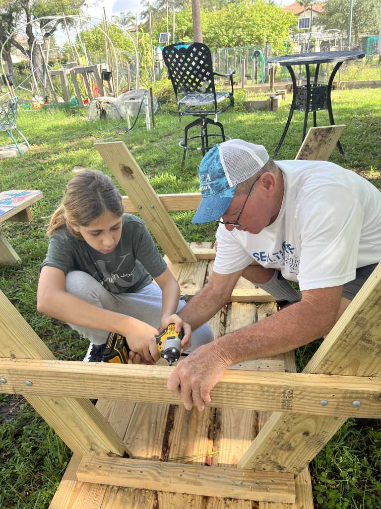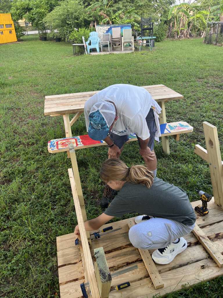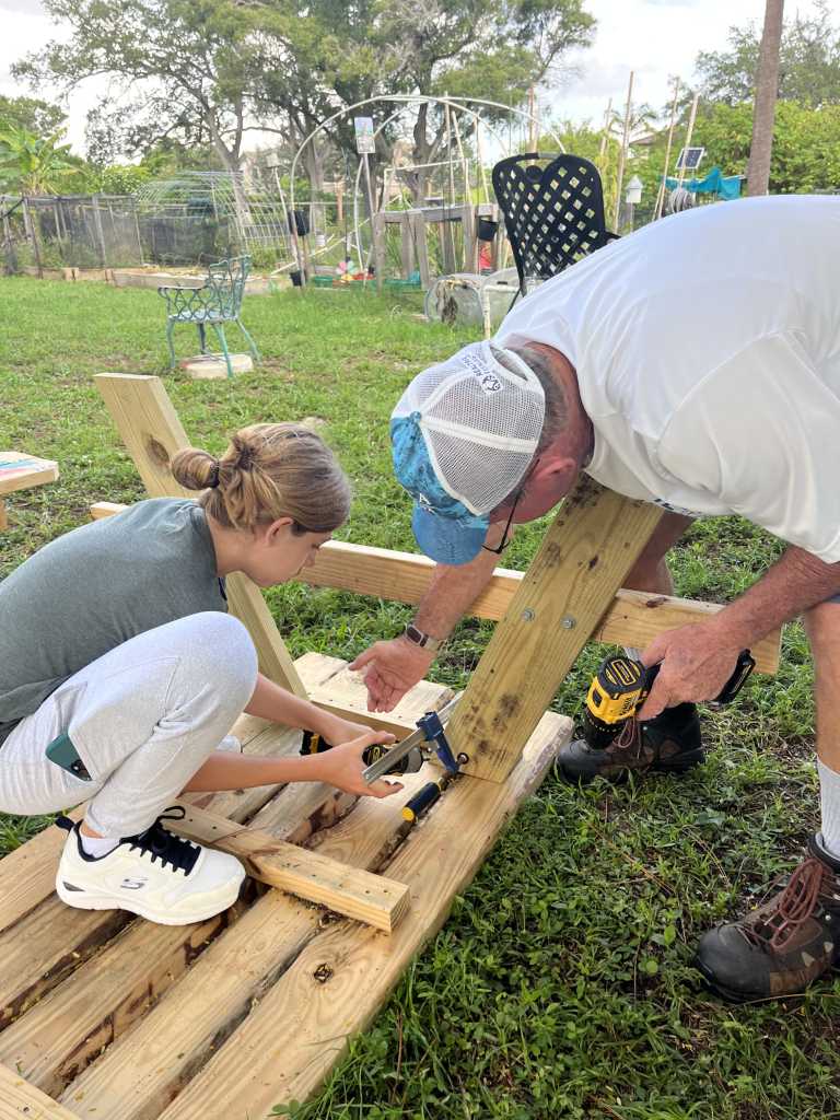 The morning kicked off with light drizzles here and there, just enough to make most people think twice about heading outdoors. But for Nathaniel A., it was the perfect day to build something meaningful. With a lot of enthusiasm, he rolled up his sleeves at the Green Urban Space, part of the Urban Farming Institute in Oakland Park, Florida, and got to work on something special: a community picnic area.